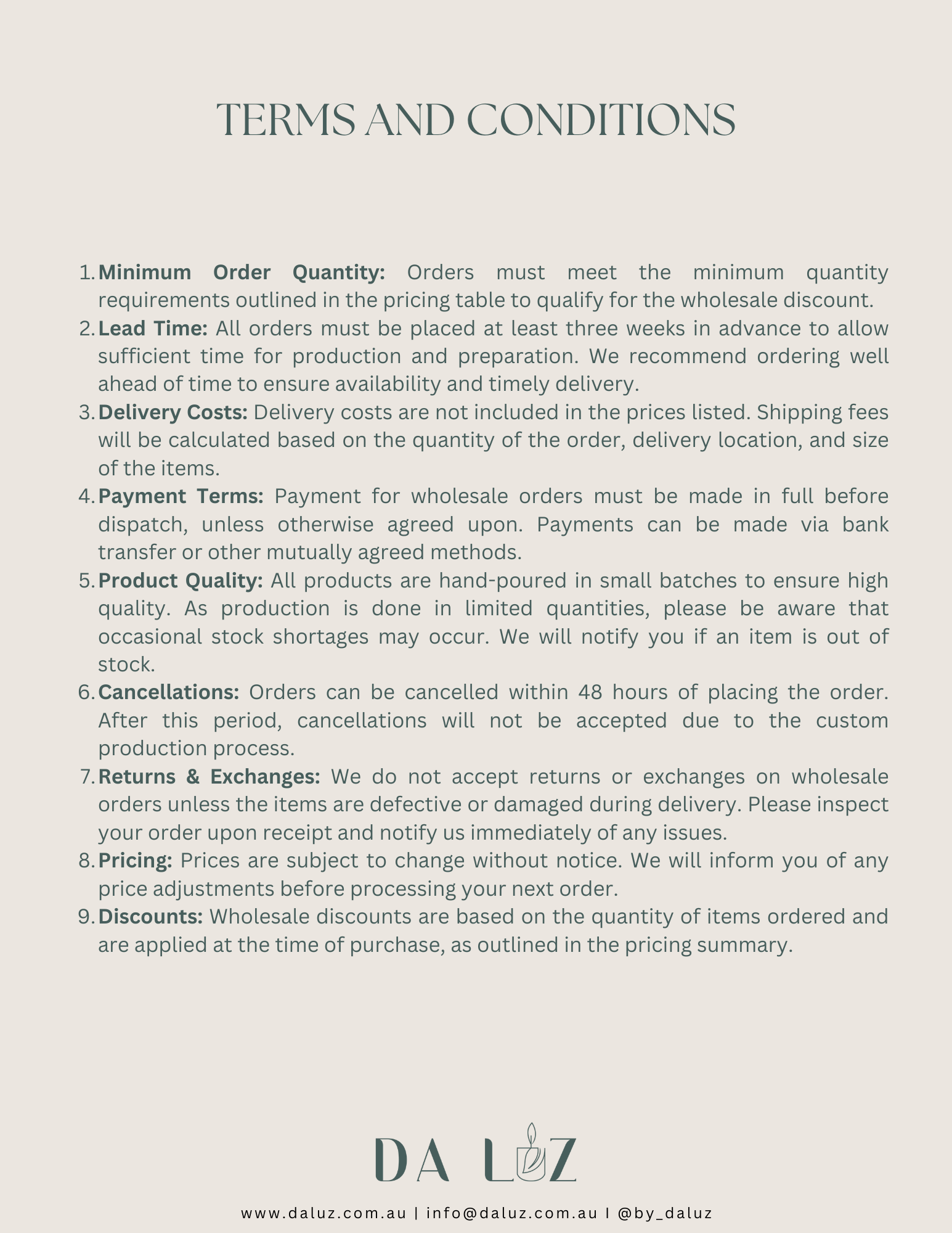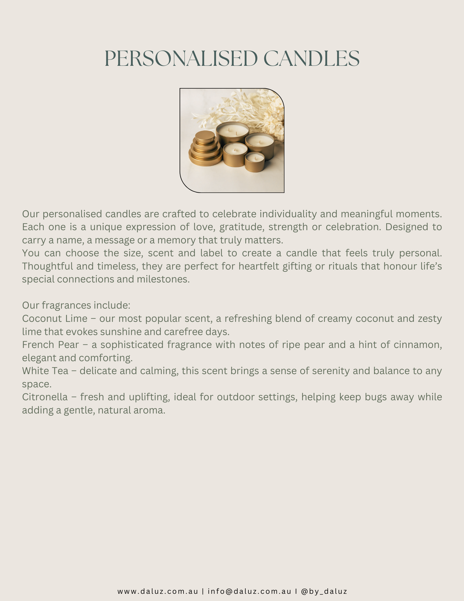 Please note: After your order is confirmed, please email your logo and personalised message to info@daluz.com.au We’ll then send you a Canva link, so you can personalise your label exactly the way you want. 🤎